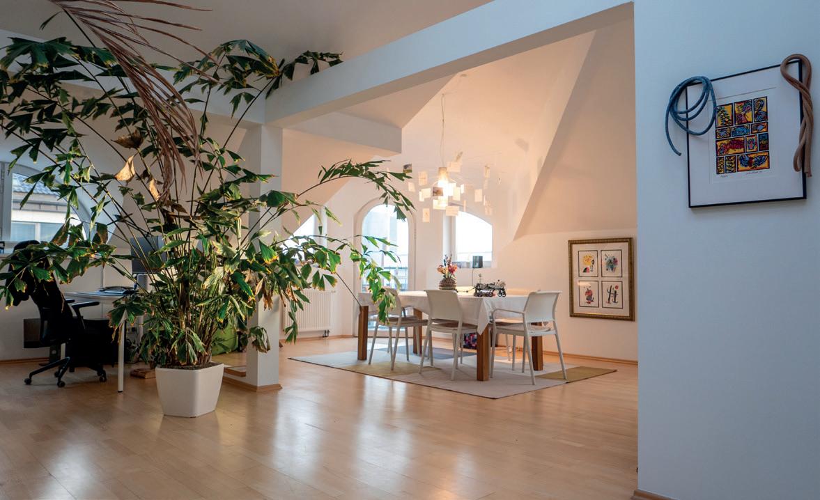 The building, a charming period property from the turn of the century, defines the architectural character of the neighbourhood and was extended in 2015 to include this exceptional penthouse. Its location on the popular Berger Straße, known for its cafés, bars and restaurants, embodies the vibrant lifestyle of the area while maintaining a peaceful residential atmosphere. Ideal for those seeking a refined yet down-to-earth lifestyle in the heart of Frankfurt’s north.