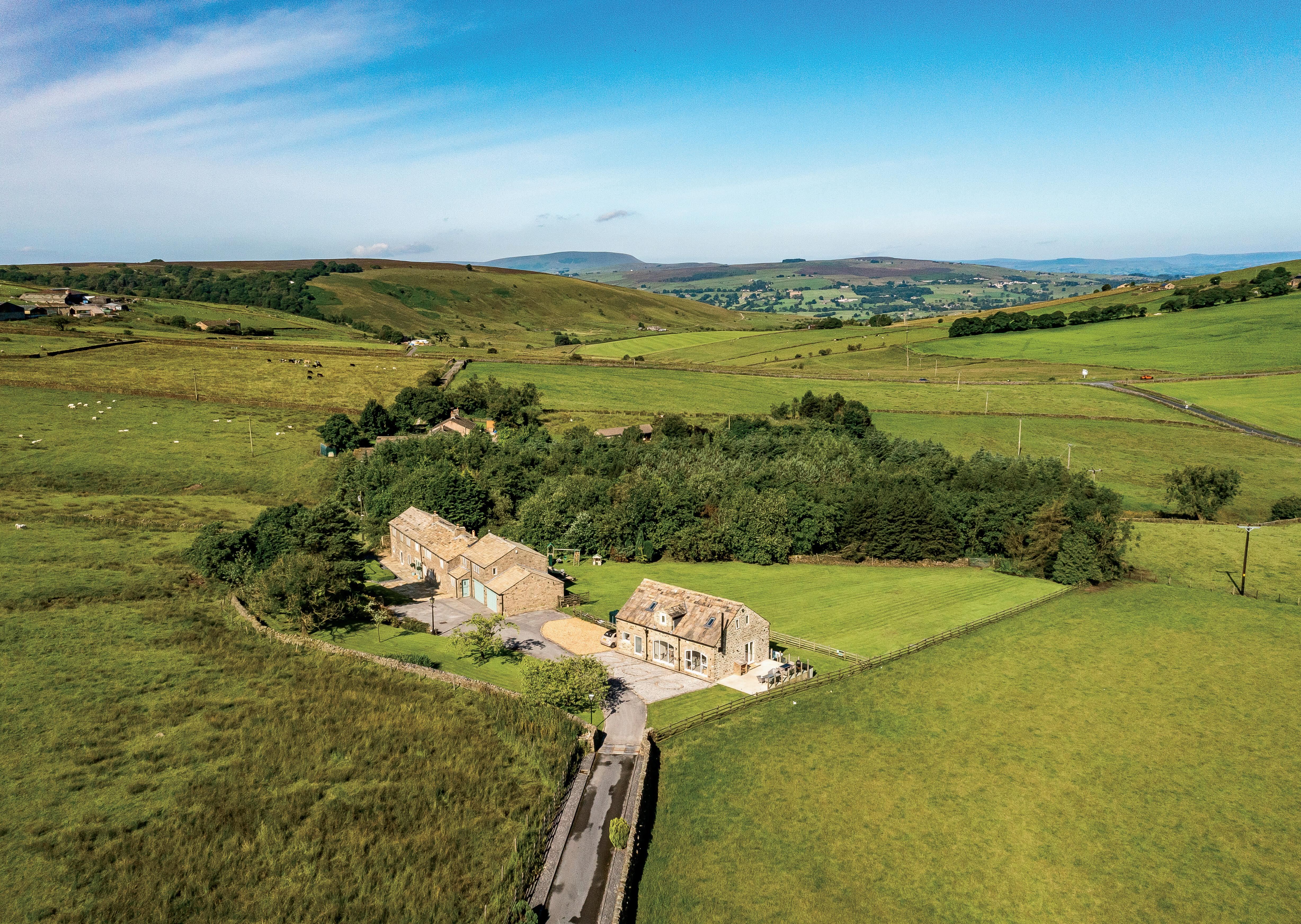 Rarely do properties like this appear on the market! This absolutely magnificent Detached Barn Conversion will appeal to up and downsizers alike having being sympathetically designed to create a wonderful contemproary home. The property sits in a rural yet convenient location benefittfing from delightful panoramic aspects offering a great deal of privacy and remains commutable to both Leeds and Manchester. The accommodation affords with underfloor heating to the majority of the ground floor: Entrance in to the Living Dining Kitchen with a range of base and eye level units, induction hob with extracor over, electric double oven and microwave, integrated fridge, freezer and dishwasher, Belfast sink with mixer tap, wine fridge, Quartz work surface area with matching splashback and Island unit with breakfast bar, two barn arch windows, feature wood burning stove, media wall and French doors to the garden. The downstairs Bedroom has a pleasant aspect over the garden with views of the Dale and there is a downstairs shower room with walk in shower with overhead rainfall shower and side attachment, marble wash basin on bespoke wooden shelf, and a dual flush WC. There is a Utility Room with plumbing for washing machine and space for dryer, wall mounted boiler and water tank. Off the Kitchen area steps lead down to a Playroom/Snug with a tiled floor, under floor heating and bi-fold doors lead out to the garden/hot tub patio and boasts the most gorgeous of views. A projector and screen are available by separate negotiation.