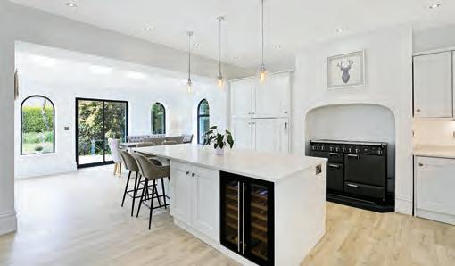 Introducing this impeccably presented four bedroom home that embodies a harmonious blend of comfortable living and exquisite entertaining spaces. Meticulously redesigned by an acclaimed architect, every aspect of this property has been carefully crafted with unparalleled attention to detail. The stunning interior of this residence boasts a master bedroom complete with a luxurious en suite, accompanied by three additional bedrooms and two further bathrooms. As you step inside, you are greeted by a spacious entrance hall leading to a tastefully designed formal reception room, making the perfect cinema room or snug. The heart of the home lies in the 25’ bespoke kitchen/breakfast room, a true masterpiece offering a seamless fusion of style and functionality, with a glass atrium giving even more light.