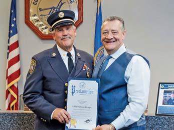 On the night of May 30, 2025, a fundraiser was held for Nassau County Fire Communications Dispatcher 45 Howie Riegler who earlier that year was diagnosed with Stage 4 lung cancer. At that event, Howie spoke before those present and expressed his intent to finish his career on his terms and not let illness get in the way. Fortunately, Howie was able to achieve that goal and on August 7, 2025, a walkout ceremony was held for him capping a career at Nassau County Fire Communications that spanned three decades. The afternoon walkout was attended by co-workers past and pres-