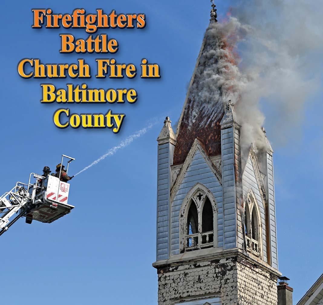 strong winds pushed the fire into the church's steeple, and additional crews operating from the tower's platform bucket opened up walls and windows. Once the main volume of fire was knocked down, crews repositioned and used saws to expose numerous locations of hidden fire within the steeple. Firefighters were able to extinguish the fire and prevented collapse of the steeple. The Baltimore County Fire Investigation Division and agents from the Bureau of Alcohol, Tobacco, Firearms and Explosives were on the scene investigating the cause and origin of the fire.