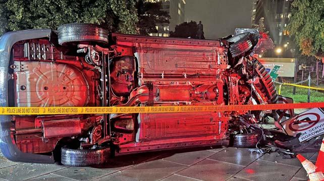 DC Fire & EMS crews responded to a single-vehicle MVAat 17th and Connecticut Avenue NW. Crews arrived to find a vehicle on its side with one adult male trapped. The person was extricated from vehicle and transported to a local hospital in serious condition. - Photo courtesy of DC Fire & EMS