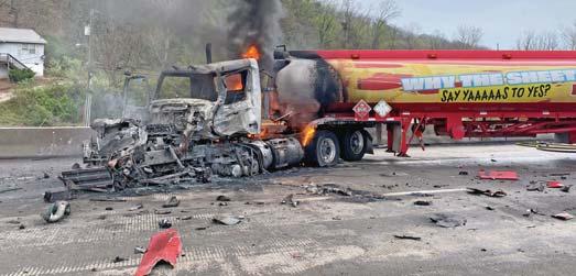 Nitro exits. The fiery incident, involving two tractor-trailers, forced the closure of the westbound and eastbound lanes forseveral hours. Two people were taken to local hospitals. The cause of the accident was underinvestigation. - Photos courtesy Kanawha County Emergency Management and Nitro FD