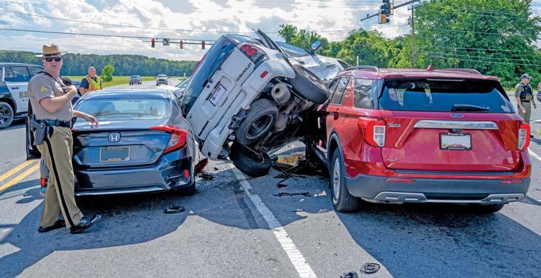 On May 23, 2025, the Hebron Fire Department was alerted foran MVAwith injuries at Route 50 and NaylorMill Road. The Salisbury Fire Department, Station 16 was also alerted to help with traffic control. Engine 16-1 arrived to find a four-caraccident with one of the vehicles sitting on top of the others. EMS crews transported two patients to Tidal Health in Salisbury for treatment. One lane of Route 50 westbound was shut down as was NaylorMill Road forthe duration of the alarm. Wicomico County Sheriff’s Office and Maryland State Police were on scene investigating the cause of the accident. - Fire News photos by Wayne Barrall