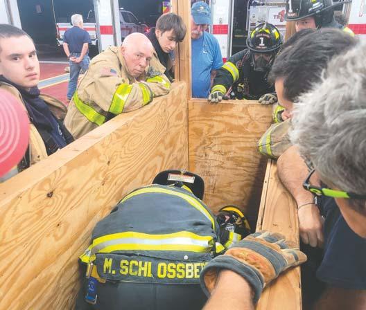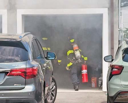 over 50 pounds of PPE. Members made a primary search; would close doors of searched rooms to retard the spread of the fire throughout the structure, while trying determine the location of the main body of fire. Finally, there was a rolling response to a motor vehicle fire. Each department sent an engine, stretched a 1-¾ inch handline and extinguished the fire. There was an EMS Re-Hab station set up to monitor the well being of all participants. The drill ended with refreshments and a debriefing led by Sparkill-Palisades Chief of Department Josh Panter. The Old Tappan Volunteers were led by Deputy Chief Chris Reilly, Captain Kristel Mockler and Lieutenant Nick Criscuolo.