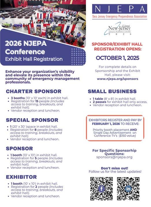 Between the opportunity to present and the chance to connect with hundreds of emergency management professionals in the Exhibit Hall, the 2026 NJEPA Conference promises to be an outstanding event. We encourage you to get involved early and look forward to seeing you in Atlantic City this spring.