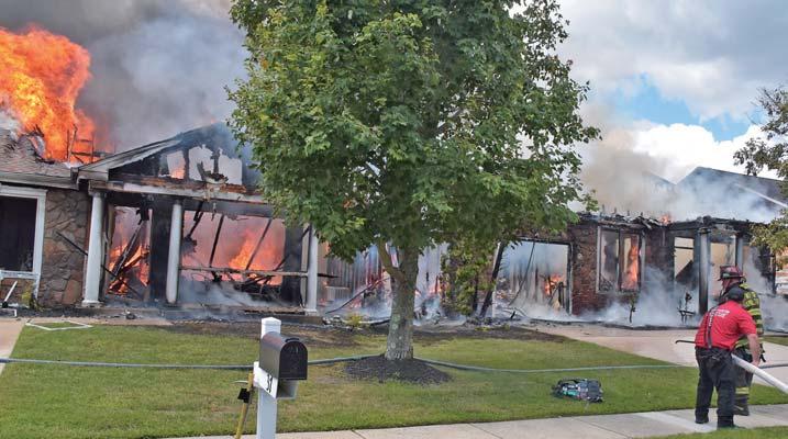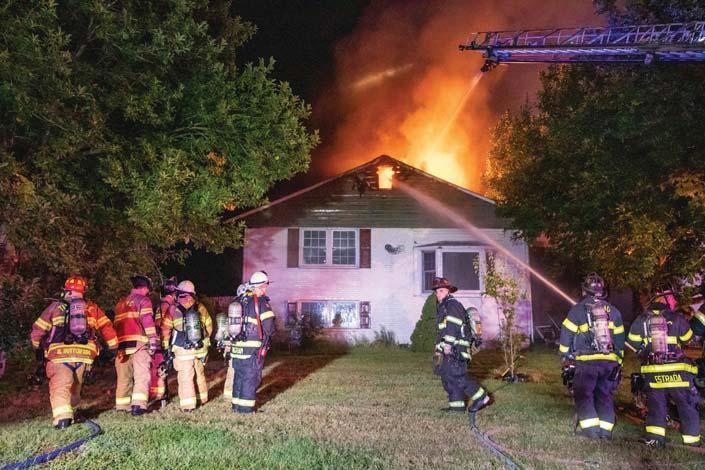 Firefighters from three counties worked together to battle a fierce blaze that gutted a home in Hopewell Township, Mercer County, during the early hours of Labor Day, September 1, 2025. Hopewell Valley’s three fire companies –Pennington, Hopewell and Union-Titusville – were dispatched. The attached garage and rear of the home were already heavily involved in flames when firstdue units arrived. A full first alarm was transmitted, bringing mutual aid to the scene from Ewing, Hamilton, Lawrence and West Windsor townships. With the nearest hydrant well over 1,000 feet away, with limited volume and pressure available, the second-alarm tanker assignment brought in mutual aid from Somerset and Hunterdon counties. One resident was transported to hospital for treatment of smoke inhalation.
