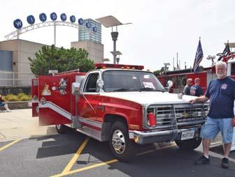 years. The Farmington Fire Company would like to thank the many firefighters who came out and paid their respects. The mural was created by Farmington Firefighter Brandon Parker and posing with it is Howard’s daughter Jennifer Ranger. - Fire News photo by Dennis C. Sharpe