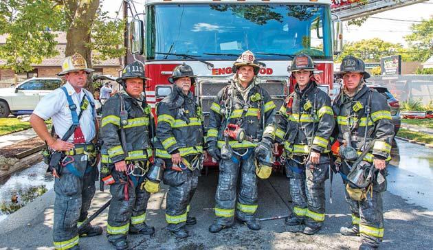 Englewood Truck 2 3rd Platoon members following an intense fight in a Bergenfield three-alarmer on September 5, 2025. Later in the evening they fought a car fire and three additional working building fires in their city. - Fire News photo by Peter Danzo