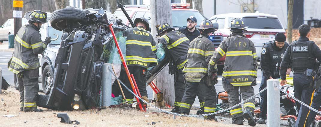 Two people had to be extricated from the wreckage of a Subaru Legacy afterthe vehicle flipped onto its side in Trenton on February 2, 2025. The crash occurred along Mulberry Street not farfrom the intersection with North Clinton Avenue and Nottingham Way. Trenton firefighters, EMS personnel and police were alerted to the crash. Firefighters from Engine 6, Rescue 1 and Ladder4 used their rescue tools to cut away part of the roof to free the driverand pas-