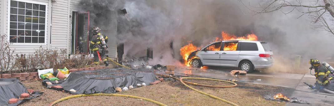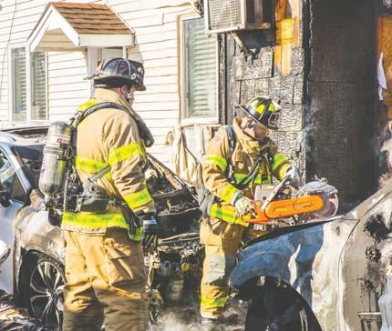 On January 29, 2025, the Rochelle Park Fire Department was alerted fora reported carfire on the 130 block of BeckerAvenue. The call was updated that several cars were on fire. On arrival of police, it was upgraded to a working house fire. As companies arrived, crews found two cars well involved in the driveway and the fire extending into the home and threatening a detached single-cargarage. Asecond alarm brought mutual aid companies to the scene. A large column of black smoke was visible as companies were responding. The fire was reported knocked down and undercontrol in about an hour.
