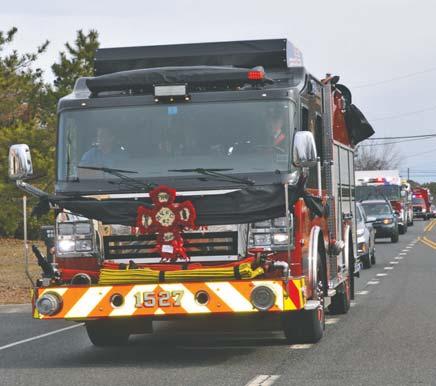 Members of the Cardiff and Bargaintown fire companies paid theirlast respects to Bargaintown/retired Atlantic City FirefighterJerry Dixon on January 27, 2025. - Fire News photo by Ken Badger