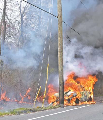 powerlines down in the driveway which were energized. Companies made an aggressive attack of the carfire knocking it down and then made an attack on the structure. The cause and origin was still underinvestigation. - Fire News photos by Chris Denton