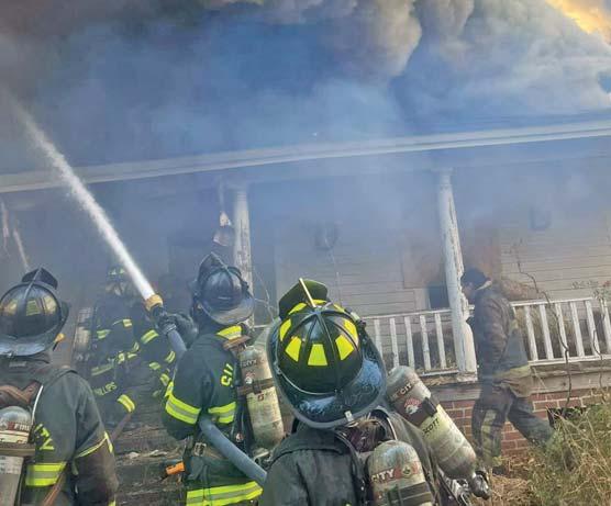 On January 10, 2025, at 1503, Stallings Fire Department, along with Matthews Fire and EMS, Wesley Chapel and Idlewild fire departments, responded to a reported structure fire on Wyntree Court with smoke and flames coming from a house. Stallings Engine 201 arrived to find a single-story home fully involved. Firefighters stretched lines to the front doorand rearof the structure. Aresident who was able to safely evacuate the home was also treated. Approximately 13 minutes into the operation, as snow began to fall, firefighters transitioned to a defensive attack. Stallings Ladder20 was utilized during the defensive fire operation. The fire was brought undercontrol within 45 minutes. Union EMS transported one person to Atrium CMC fortreatment of burns and smoke inhalation. The fire was underinvestigation by the Union County Fire Marshal’s Office, but initial indications pointed to a fire that began in the kitchen. The home was a total loss. - Fire News photo by FullyInvolvedMediaGroup.com