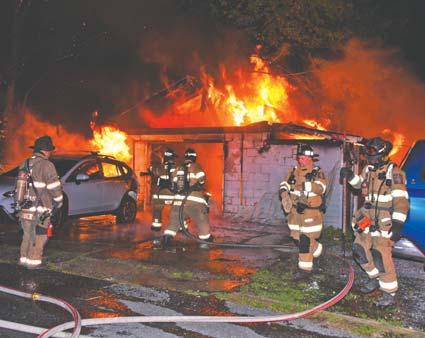 On April 27, 2025, Swatara Township Box 49-1 sent Company 91, Engines 301, 50, 55, 59 and 2-13, Truck 32, Rescue 88, RIT69, and Squad 8 to 4th Avenue in the Oberlin section of the township, fora structure fire at 0457 hours. Responding units advised of a callerreporting flames and smoke from across the street. Chief 91-6 (Bradnick) arrived to a well involved, detached garage and vehicle to the rear of a 5th Avenue garage. Engine 91 dumped the monitor, then two lines were pulled, knocking down the bulk of the fire in less than 10 minutes. The fire was placed undercontrol at 0513 hours. - Fire News photo by Jason Coleman-Cobb
