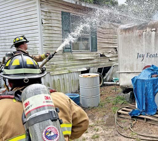 The Trinity Fire Department was dispatched to the 700 block of Edwards Road in the City of Woodruff on July 28, 2025, for a reported house fire. Trinity Chief 5 arrived on the scene of a singlestory single-family home with smoke showing and established command. Engine 5 arrived (driver only) and stretched a 1-¾ inch line to the alpha side which now had fire showing from the alpha and bravo sides. Truck Company 5 arrived as the first special service splitting its three man crew for primary search and vertical ventila-