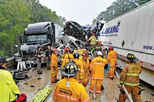 one gentleman was climbing on the pile of vehicles. He was able to direct responders to the most injured and provided good information on the number of injured and their locations. Firefighter-Paramedics performed two extrications simultaneously. Nine of the patients were transported to HCA Colleton Hospital and Beaufort Memorial Hospital. Thirteen patients did not require hospitalization. The two deceased patients were transported by the Colleton County Coroner’s Office.