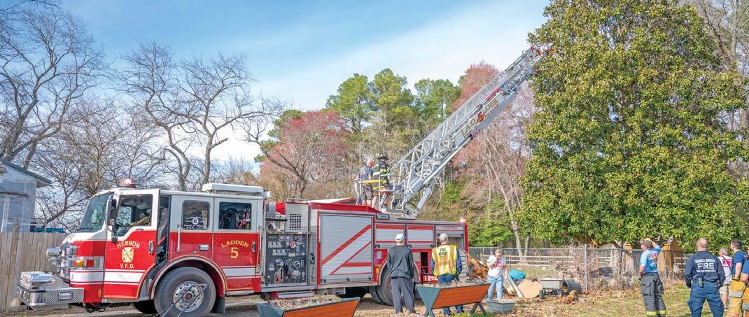 On March 19, 2025, the Hebron Fire Department, along with the Salisbury Fire Department, were alerted fora rescue at a residential property on Levin Deshiell Road, east of Hebron. Crews were advised of a seven-year-old child, who had climbed up a large magnolia tree, was stranded some 60-feet up. Chief Carbaugh arrived and established command. Ladder5 arrived and backed down the driveway and prepared to gain access to the child. Firefighters had to cut tree branches to gain access to the boy. Once the child was reached, he was able to climb down Ladder5 with the help of a Hebron firefighter. The child was checked overby Hebron EMS and was found safe, just a little scared.