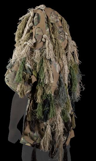 Developed in conjunction with Treadswift, the LWAG is a lightweight concealment cloak that can be used for disrupting visual, infrared, or thermal detection. Utilizing lightweight, weather resistant mesh, and Trelleborg combination patterning, the LWAG can be garnished as necessary or used as is. Generously sized to cover equipment, but still easy to stow on your pack or load carriage, it has a stretch cord for under arm positioning and a security strap for the front that can be adjusted for height and girth. The hood of the LWAG is secured in place with large smock style buttons.