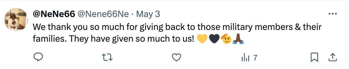 Genevieve Sims-Wilson is a guest at the Fort Liberty Army Fisher House who also happens to be a culinary specialist. She loves to utilize the kitchen to not only complete her homework assignments for culinary school but also to assist her healing journey and bring joy to the staff and guests by allowing us to partake in her wonderful dishes. The food she creates is always delicious.