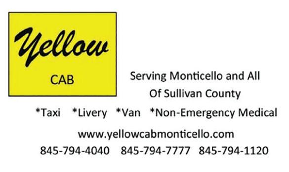 1 Schroeder St, 12701 845-794-1120 YellowCabMonticello.com yellowcabdesk@aol.com