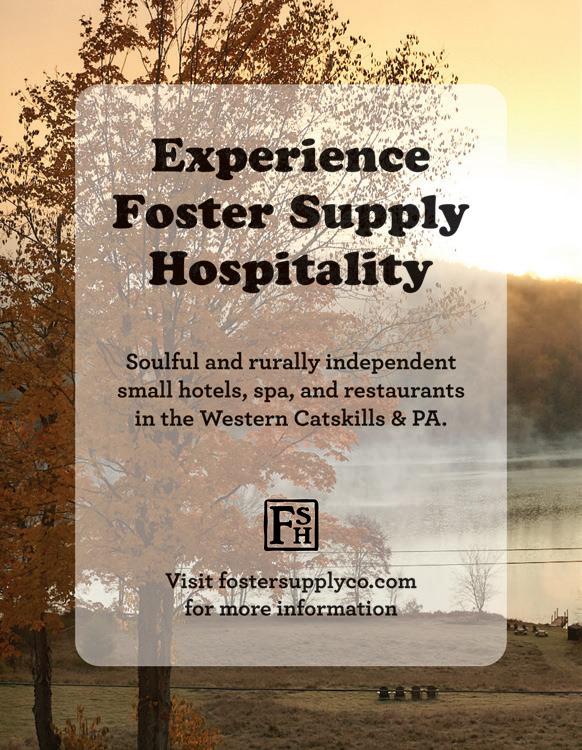 ❤ Blue Fox Motel 5670 Route 97, 12764 845-252-5200 BlueFoxMotel.com info@bluefoxmotel.com Built in the 1950s and renovated to preserve its mid-century, rustic charm – it’s the perfect spot for getaways, weddings and retreats. Enjoy this gorgeous boutique hotel and its charming restaurant.