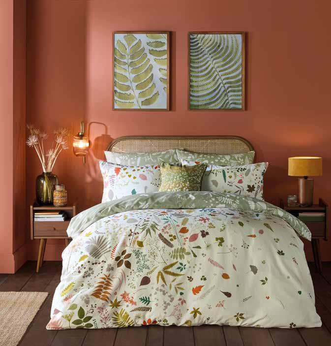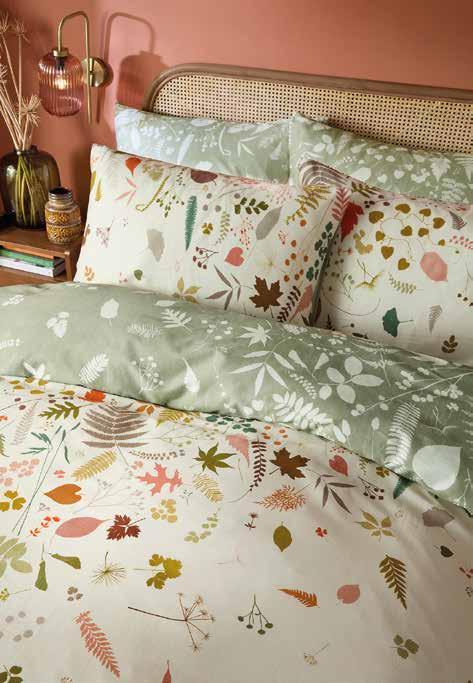 Reminiscent of a peaceful forest stroll, this Woodland Walk Bed Linen captures the essence of Autumn with its warm palette of terracotta leaves, olive seedheads, and dried woodland treasures. The soft sage green reverse offers a more subtle variation of the print, giving the choice of two different looks to update your bedroom.