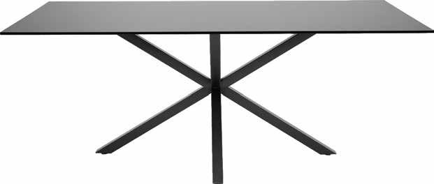 “The new ASTER dining table has a striking graphic silhouette and features sleek lines and a durable black glass surface, ideal for both everyday use and special occasions”