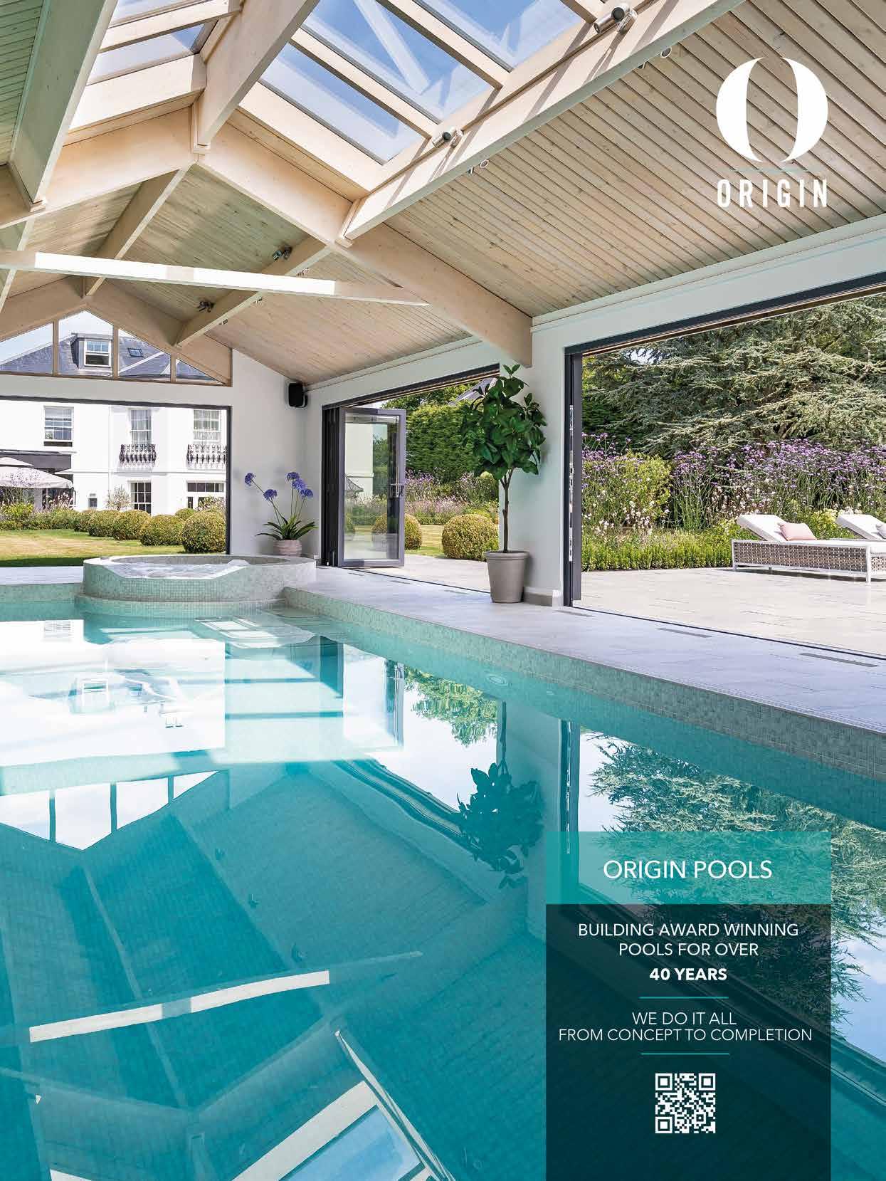 Origin’s client-led construction allows you to control everything. You choose the style, the lighting, the ambience, the temperature and of course, when and how you swim. You can have all the mental and physical health benefits of swimming as well as the added luxury of yearround enjoyment and the privacy of swimming in your home or garden. The idea of an indoor pool presents an opportunity to create a unique interior space for play, exercise and entertainment - whatever you want it to be. The experts at Origin will help you design your dream space and create the right pool house for you and your needs. Exercise is a cornerstone of a healthy lifestyle and swimming is an activity which benefits individuals of all ages. Beyond the immediate enjoyment it brings, swimming offers many health advantages.