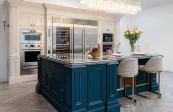 while the two-drawer cabinets and plain island panels maintain a clean, uncluttered aesthetic, allowing the slim shaker frame to take centre stage. This attention to balance and cohesion is echoed in the island’s framed end panels, showcasing Valina’s refined detailing throughout.