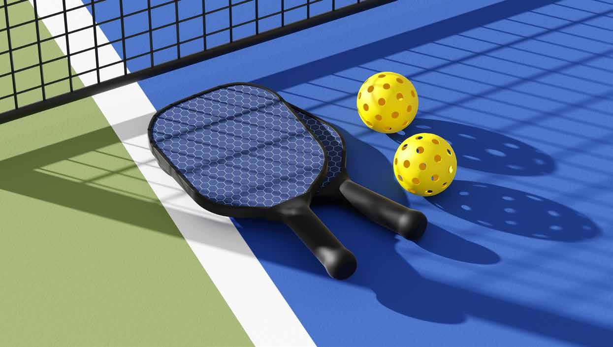 ickleball is a racquet sport that combines elements of tennis, badminton, and table tennis, and is played with a paddle and a plastic ball with holes. Pickleball courts are typically smaller than tennis courts and may be indoor or outdoor. They are marked with lines to indicate the boundaries and zones of play. Pickleball is fun game for all of the family. The rules are pretty simple and the game is easy for beginners to learn, but as you develop your skill it can develop into a fast-paced, competitive game!