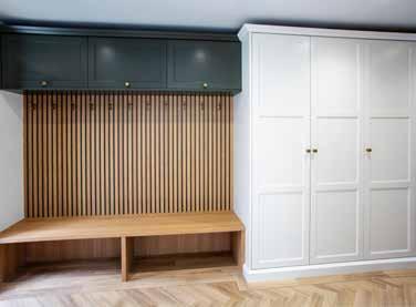 Bespoke storage that’s perfectly designed and tailored to your family, such as benches, cubbies, hooks and built-in cupboards, keeps everything organised in a compact, stylish way.