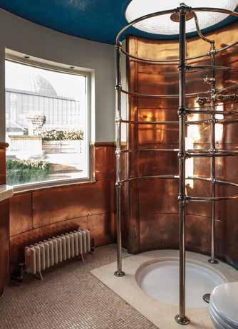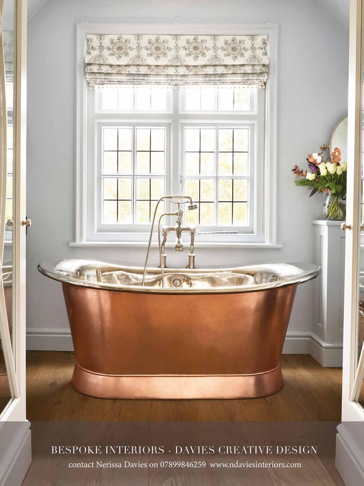• A Georgian Copper bath set in an elegant ensuite, framed by a grand Georgian window—a fusion of history and luxury.