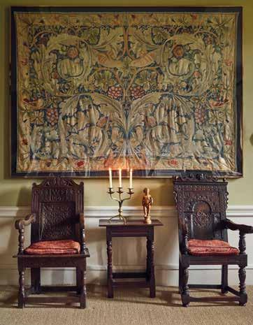 • A 17th-century kitchen, scribed to fit the natural angles of the space, incorporating contemporary appliances without compromising its historic charm