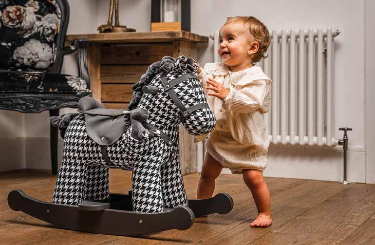 Dazzle is the most stylish rocking horse out there. With a striking black & white houndstooth body, he is guaranteed to WOW and is sure to be the focal point of any room in the house. Dazzle is joined by his pocket buddy Jet, who is a little horse character that features the same bold black & white houndstooth design. Complete with a complementary leatherette bridle and saddle that little ones will love, this rocking horse is a statement piece, blending classic playful charm with a contemporary twist. littlebirdtoldme.com