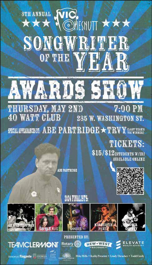 TORRANCE FESTIVAL OF IDEAS (Online) Commemorate 40 years since the founding of UGA’s Torrance Center for Creativity with three days of innovative and inspiring discussions on creativity and learning. View schedule of speakers and topics online. Apr. 23–25, 9 a.m.–6 p.m. www.tinyurl. com/2024ideasfest