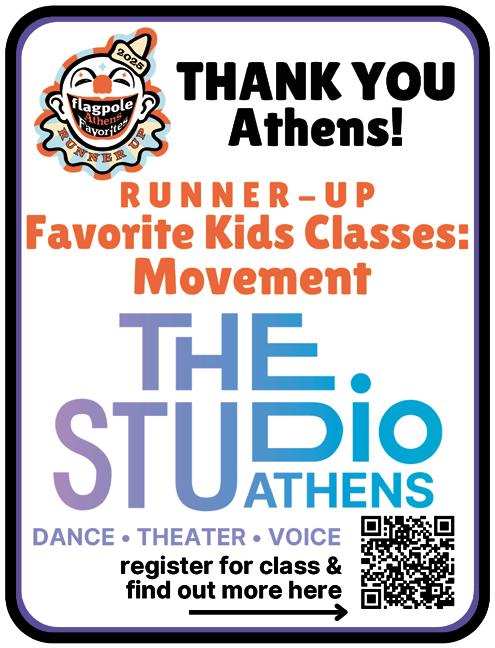CAMP PROGRAMS (The Studio) Registration for “Creative Kids Camp” starting in June is now open. Programs are for ages 4–8 with music, art and movement to foster creative expression and imaginative play. www.thestudioath.com