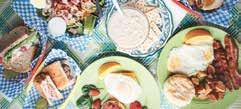 File Under : Something Different, Downhome and BBQ, Vegetarian Friendly. FeatU res : Catering, counter service, delivery, take-out, art, outside seating, table service, full bar (Watkinsville). H oU rs : Lunch and dinner, weekend brunch (Watkinsville). • Original location is in an old-timey grocery with high ceilings and a ton of outside seating under fairy lights. BYOB. New candy-colored “Deluxe” edition is in Watkinsville with cocktails, beer, wine and dance party bathrooms. Both serve amazing cheeseburgers, pork and tofu barbecue and excellent veggie sides. $$