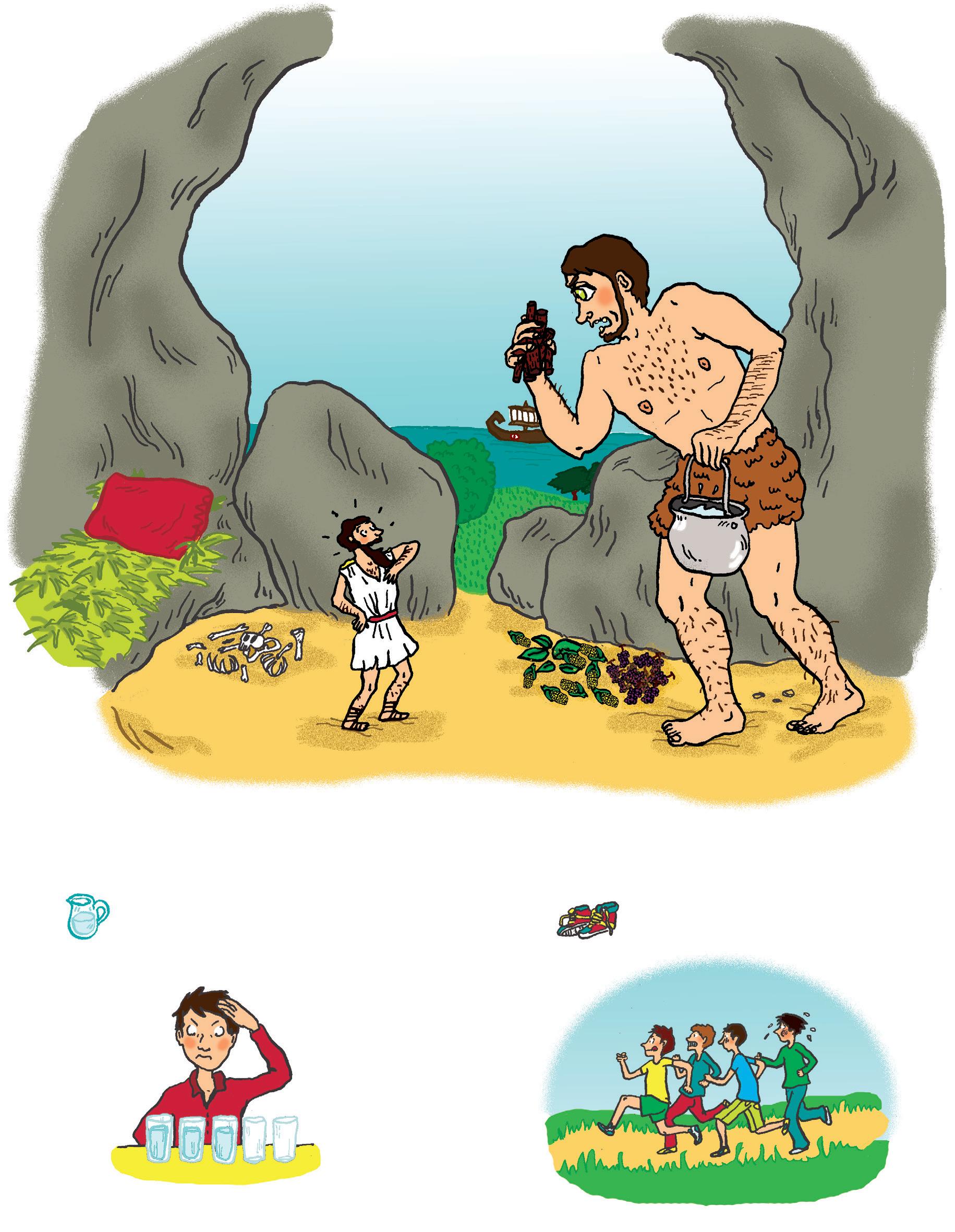 Le cyclope ne comprend plus rien et tente de démêler ce dilemme. Mais pendant qu’il réfléchit, Ulysse s’échappe.