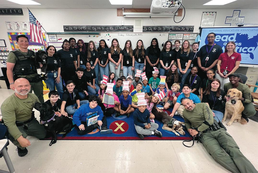 At Emerald Cove Middle School, leadership and literacy go hand in hand. During the “Students Read a Book Across America” event, Pre-IT academy students took the lead in mentoring and inspiring younger learners at Equestrian Trails Elementary School. Through engaging readaloud sessions, middle schoolers brought the magic of Dr. Seuss to life, fostering a love for reading among kindergarten and firstgrade students. Thanks to the generosity of donors, each young student received their own copy of a Dr. Seuss book, allowing them to continue their reading journey at home. Adding to the excitement, the Palm Beach County Sheriff’s Office joined the event with their emotional support dogs, creating a warm and welcoming environment for the children. Through this collaborative effort, Emerald Cove’s Pre-IT students are proving that leadership starts with giving back and making a difference.
