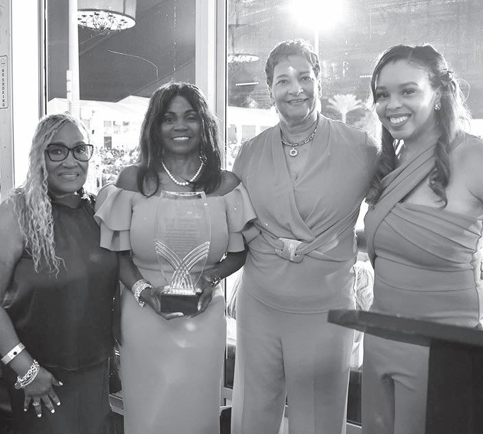 Dr. Monique Barbor of presenting sponsor Clear Vue Eye Center is honored by Marcia Hayden, president of the Alpha Alpha Upsilon Omega Chapter of Alpha Kappa Alpha Sorority; Geneva Pettis-Hasell, president of the Crowned Pearls of Wellington; and Krissy Robbs, mistress of ceremonies.