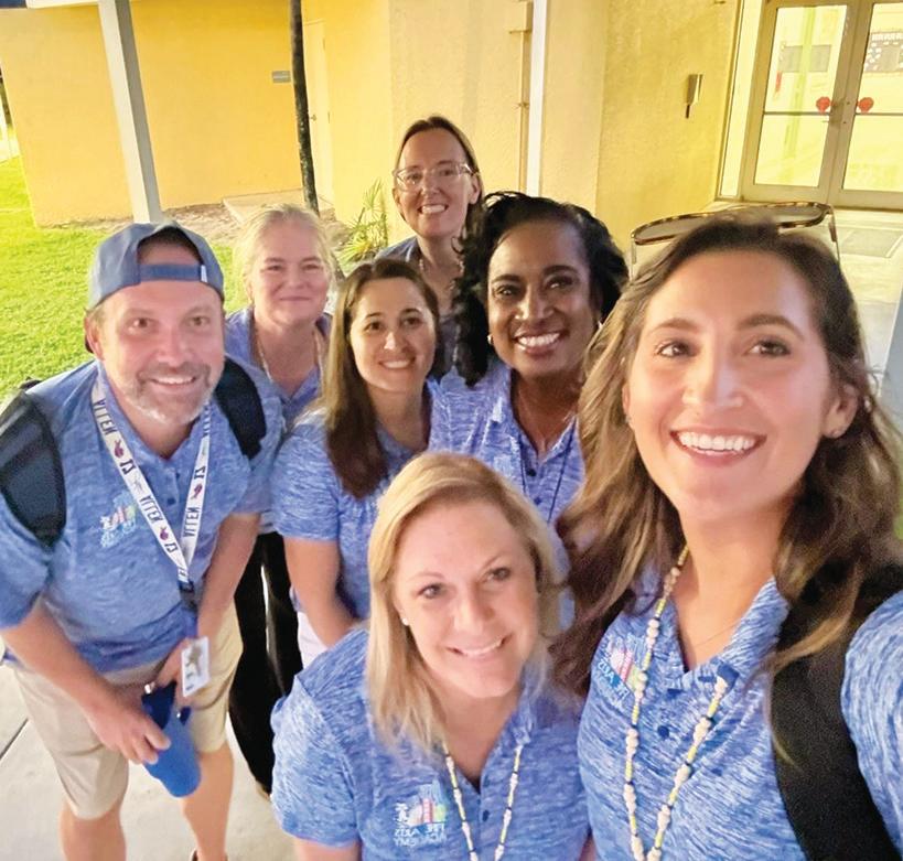 Wellington Elementary School hosted Curriculum Night on Wednesday, Aug. 27. It was a great opportunity for parents to find out what their child will be learning this year and how they can support them. The sessions were split up with grades K to 2 coming earlier, then grades 3 to 5 later. Principal Dr. Maria Vaughan and Assistant Principal Donna Dekersky greeted all the parents as they entered. There were also school spirit wear items to buy, and PTO members and staff were on hand to answer questions. Shown here are the fifth-grade teachers, the last to leave for the evening. (Front row) Kim Portilla and Ally Goldstein; (middle row) Matt Campbell, Sadiona Deda and Lisa Robinson; and (back row) Kristine Frey and Kelly Small.