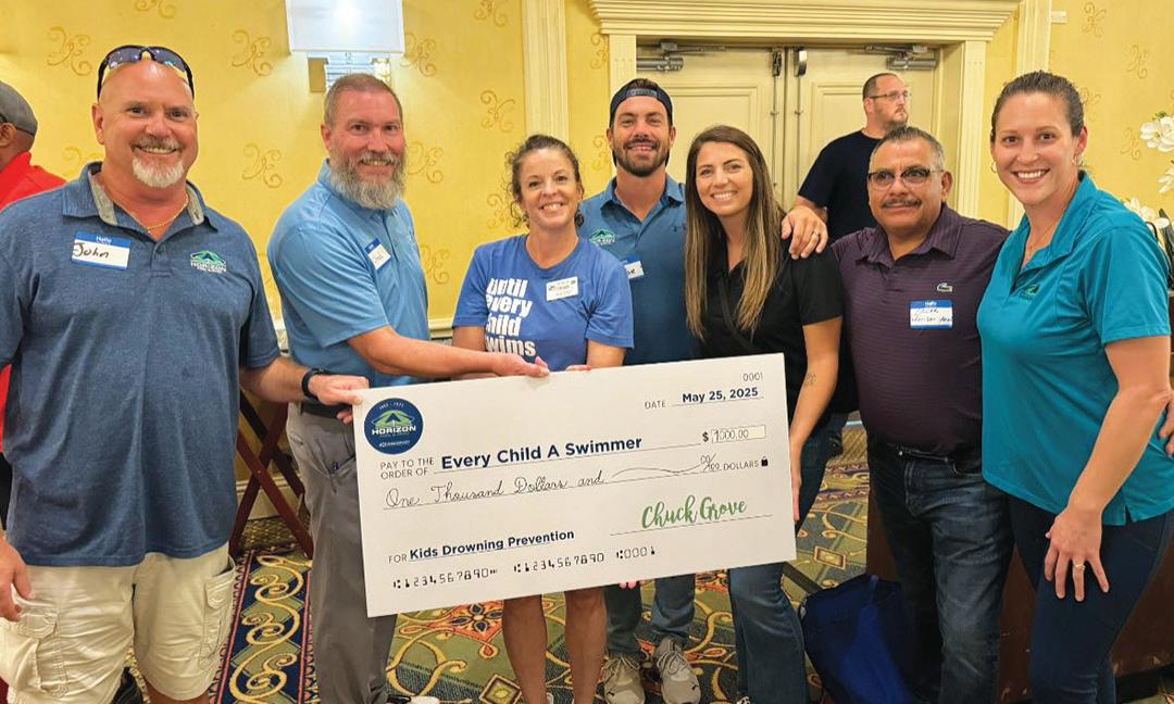 In mid-August, thanks in part to ticket purchases by Horizon customers, the company donated $1,000 to Every Child A Swimmer, a nonprofit on a mission to reduce childhood drownings through lifesaving swimming lessons, regardless of financial need. The funds were raised through the raffle of a gift basket valued at more than $500, including a $250 Horizon Pool & Patio gift card.