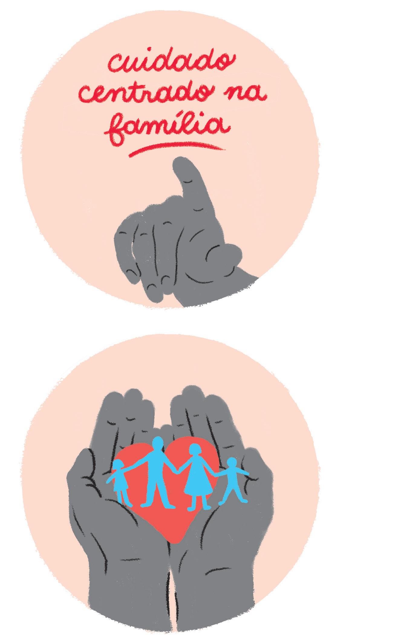 Nessa modalidade de cuidado, reconhece-se que cada família é única e presente na vida da criança e que os pais e familiares são os especialistas nas habilidades e necessidades desta (INSTITUTE FOR FAMILY-CENTERED CARE, 2008). Nessa perspectiva, o cuidado centrado na família reúne um conjunto de valores, atitudes e abordagens, considerando os pontos fortes e as necessidades de todos os membros da família (CANCHILD, 2019).