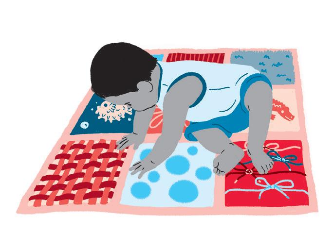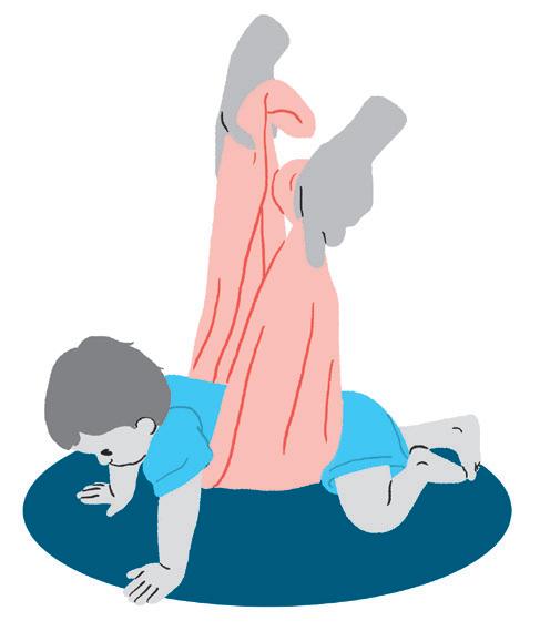 • De barriga para baixo, começa a se apoiar com as mãos e, até o final do primeiro trimestre, apoia-se nos antebraços;