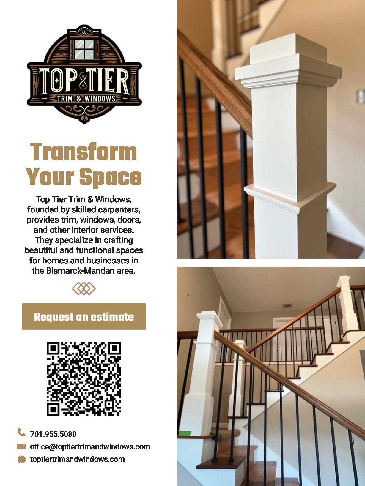 respect in the industry. She is part of North Dakota’s womenowned business network, which has helped her navigate the unique challenges of being a female entrepreneur. She believes more women should enter the field. “When I knock on a door, the odds of someone opening it for me might be a little higher than for a man,” she explains. “It’s a friendlier, maybe less intimidating presence.”