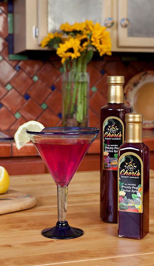 Prickly pear cactus fruit is nature’s gift in the Sonoran Desert. Cheri’s crew hand-harvests, processes and manufactures delicious Prickly Pear Cactus Syrup. Picked at the peak of ripeness, the certified organic prickly pear cactus fruit is harvested for its rich vibrant color, flavor and exceptional nutritional values. It is used to enhance drinks like coffee, tea, margaritas or martinis as well as a complimentary addition to desserts and entrees. The prickly pear cactus syrup is gluten free with no additives, preservatives or artificial coloring or flavoring and is Kosher certified.