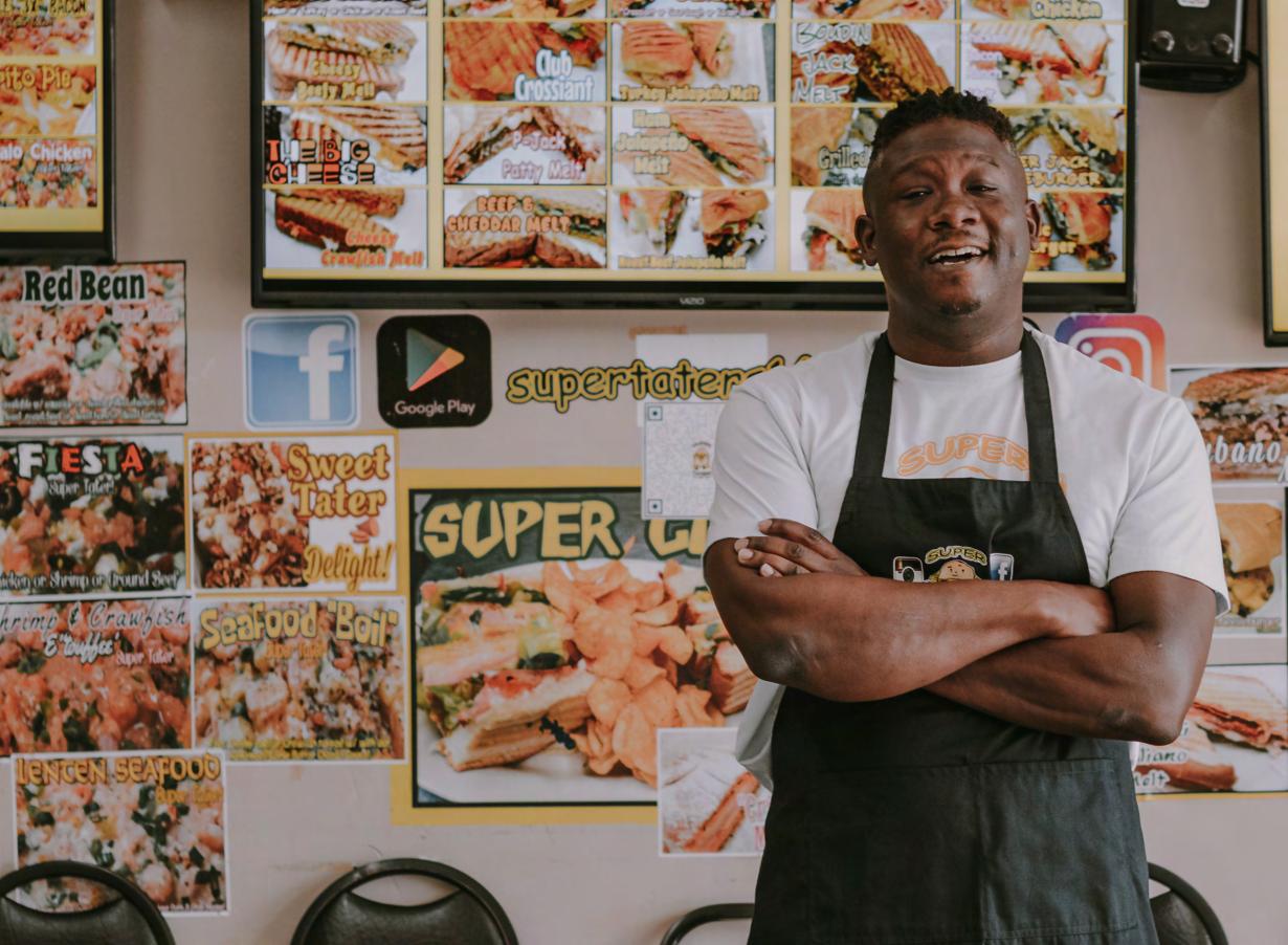 Jerry is the Chef/Creator/Owner/Operator of Super Taters & More in Scott, (Lafayette) Louisiana. Super Taters is game changing for Culinary Artistic gourmet stuffed baked potatoes but also for what Jerry refers to as “BIG Menu Energy”. Imagine a delicious hi-definition visual menu spanning an entire restaurant wall!