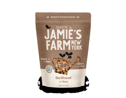 There’s something undeniably comforting about the warm, spiced aroma of chai—and when it’s baked into a crunchy, buttery streuseltopped granola, magic happens. Jamie’s Farm Chai Streusel Granola is a love letter to cozy mornings, inspired by the ritual of brewing a spiced cup of tea and the nostalgic crumble of coffee cake. Baked with ghee butter instead of oil, this granola delivers rich flavor and a delicately crunchy texture that sets it apart from anything on the shelf. Jamie’s Farm sources upcycled chai spices from Brooklyn-based tea company Dona, giving a second life to ingredients that are still rich in flavor and soul. The blend of cinnamon, cardamom, and ginger pairs beautifully with oats and nuts, with a sweet and spiced finish. Whether you sprinkle it over yogurt, pour it into a bowl with milk, or snack on it by the handful, it brings a little extra joy to the everyday.