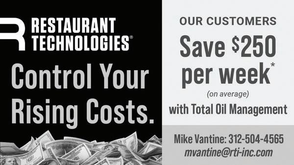 Restaurant Technologies is a leading provider of automated kitchen solutions, best known for its Total Oil Management system. The company partners with restaurants, convenience stores, and foodservice operators nationwide to improve employee safety, operational efficiency, and food quality through automated cooking oil handling. Instead of manually transporting, filtering, or disposing of hot cooking oil – a process that is labor-intensive and hazardous – Restaurant Technologies installs a closedloop system that delivers fresh oil directly to fryers and removes used oil automatically. The company’s Chicago Depot in Des Plaines services the region storing fresh cooking oil waiting to be delivered to local customers as well as waste oil waiting to be removed for recycling. – See their ad on page 13